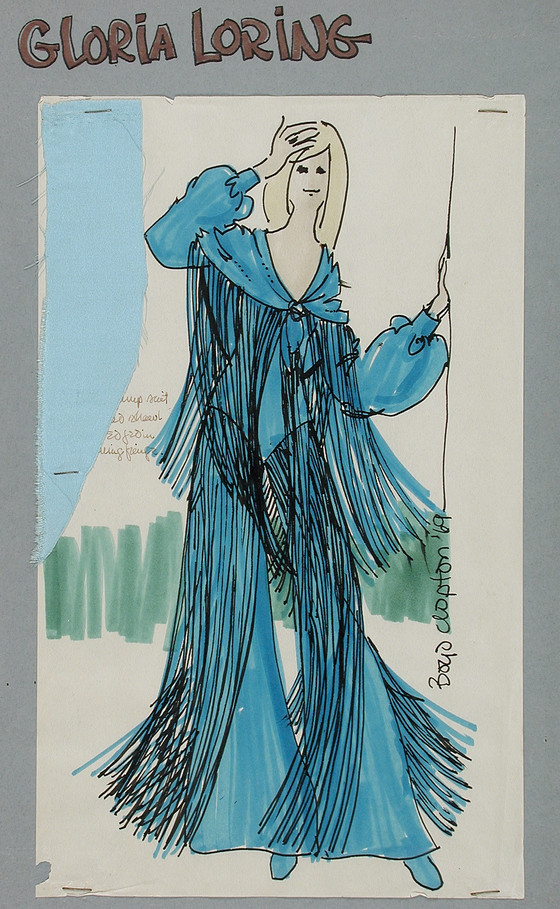 Gouache on paper, cloth swatches, mounted on cardboard matte