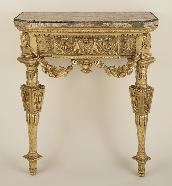 Gilt wood, marble, gilt bronze