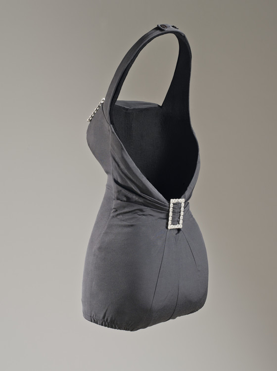 Acetate/ Lastex plain weave (faille) with crystal buckle ornaments