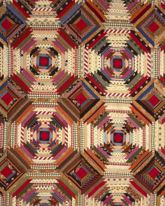 Quilt, 'Log Cabin' Pattern, 'Pineapple' variation