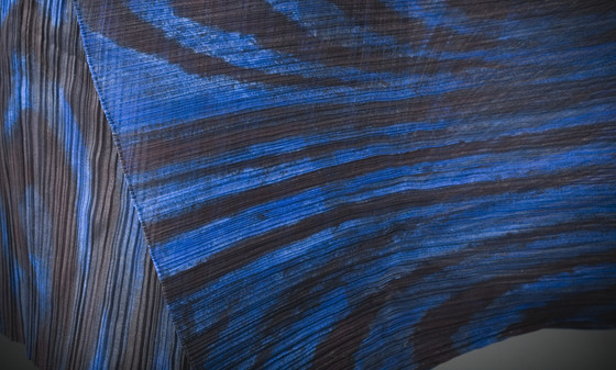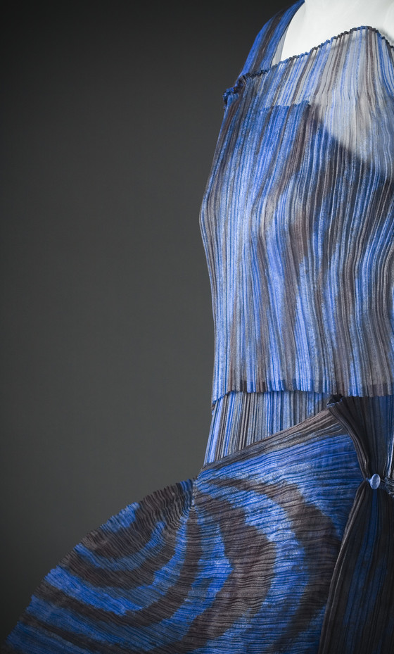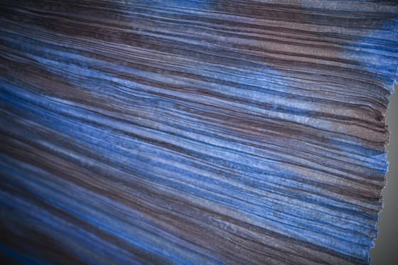 Polyester plain weave, printed, with heat-set pleats, metal grommet