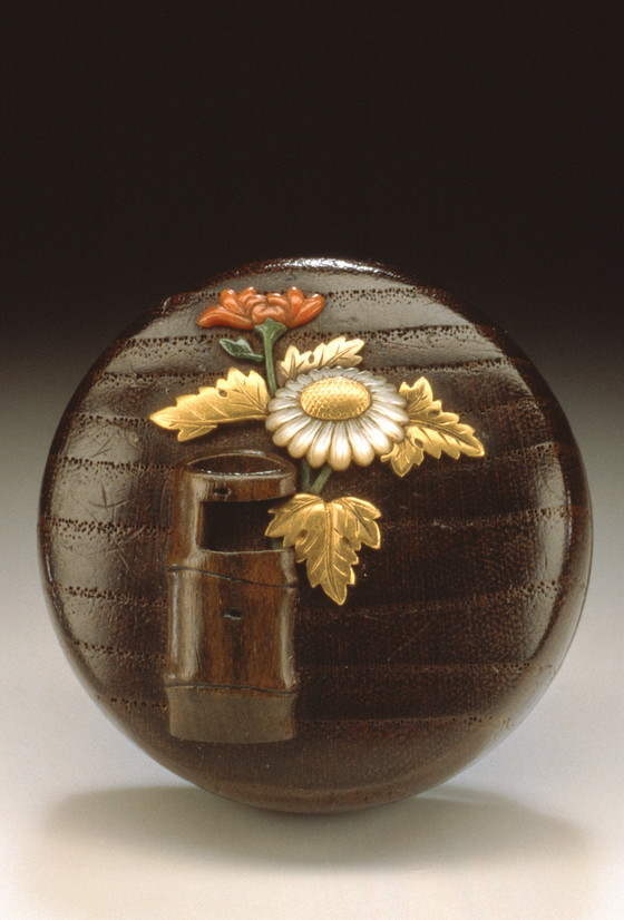 Wood with inlays of gold, coral, mother-of-pearl, wood, and stained ivory; manjū type
