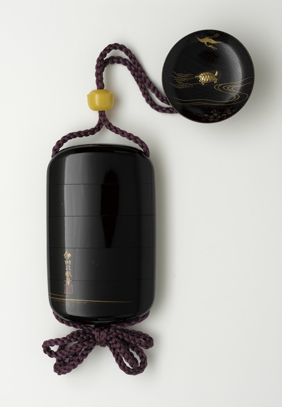 Inrō: 3 9/16 x 2 3/16 x 13/16 in. (8.9 x 5.4 x 2 cm); Ojime: 3/8 x 9/16 in. (1 x 1.4 cm); Netsuke: Diameter 1 13/16 x 1/2 in. (4.4 x 1.2 cm)