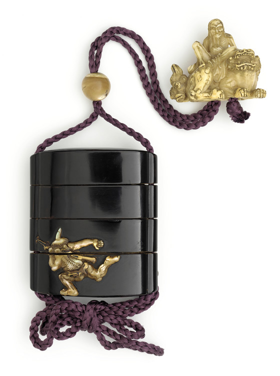 Inrō: 2 5/8 x 2 1/4 x 7/8 (6.5 x 5.7 x 2.2 cm); Ojime: 1/2 x 1/2 in. (1.3 x 1.3 cm); Netsuke: 1 7/8 x 1 5/8 x 1 in. (3.6 x 4.1 x 2.4 cm)