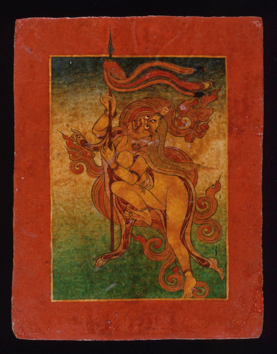 Yellow Yami (?) with Spear, Nyingmapa Buddhist or Bon Ritual Card