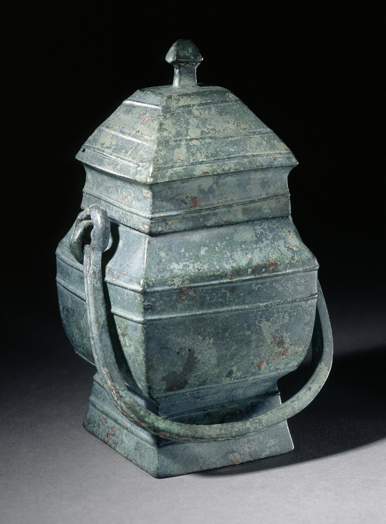 Lidded Square Ritual Wine Bucket (Fangyou) with Horizontal Ribs