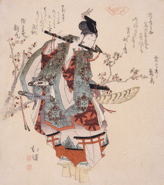 Ushiwaka Playing a Flute