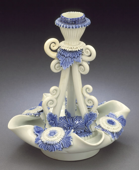 Alternate Title: 平戸三河内焼染付貼付菊文燭台