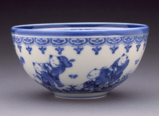 Alternate Title: 平戸三河内焼染付五人唐子松文茶碗