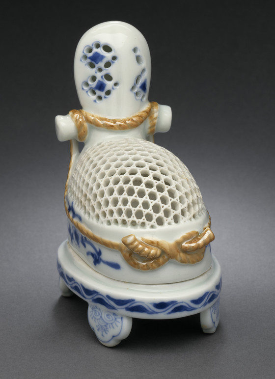 Alternate Title: 平戸三河内焼染付銹釉台に烏帽子型香炉