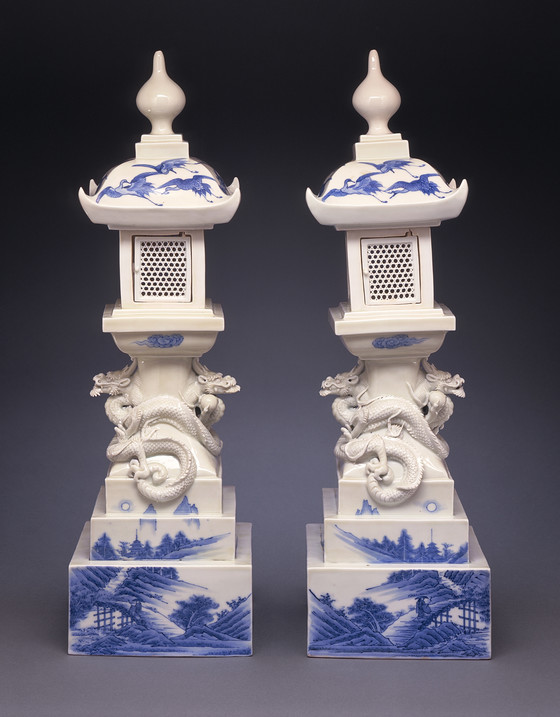 Alternate Title: 平戸三河内焼染付山水文龍彫透彫灯楼