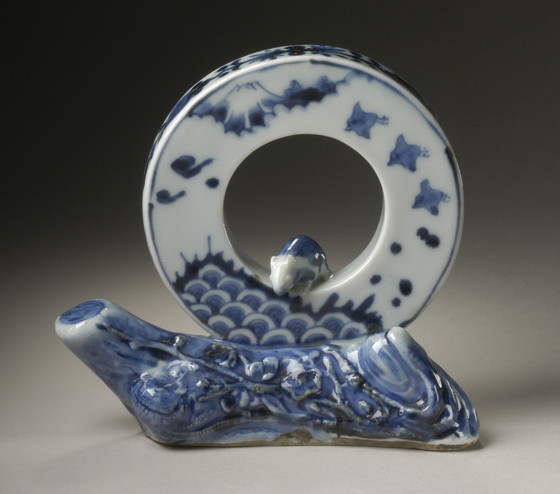 Alternate Title: 平戸三川内焼染付富士に千鳥文梅と鼠に円型硯屏か置物