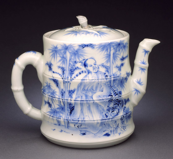 Ewer in the Form of Bamboo with Sages of the Three Creeds: Fenggan with Tiger (Buddhism), Confucius, and Laozi (Daoism)