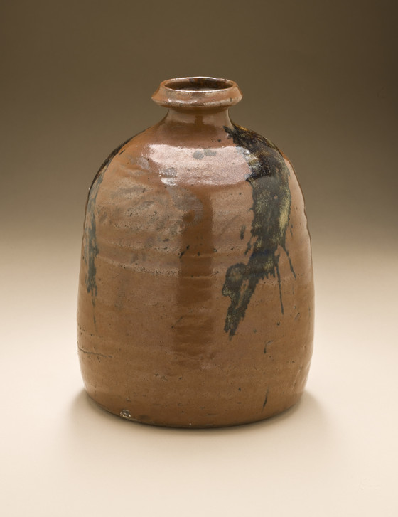 Shigaraki ware; stoneware with persimmon and black iron glazes
