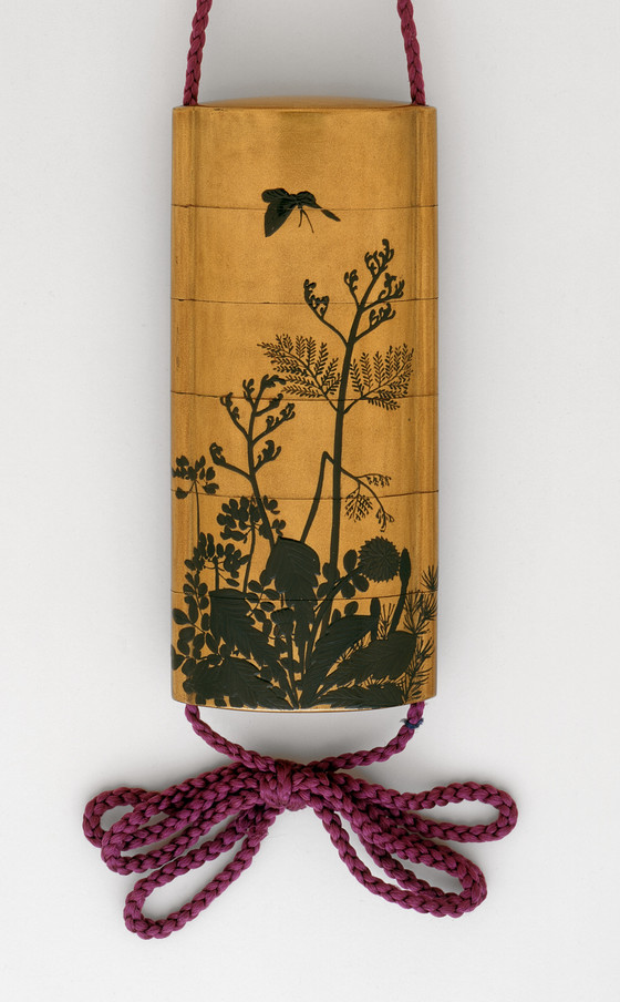 Ferns and Plants with Butterfly (Inrō/Ojime/Netsuke Ensemble)