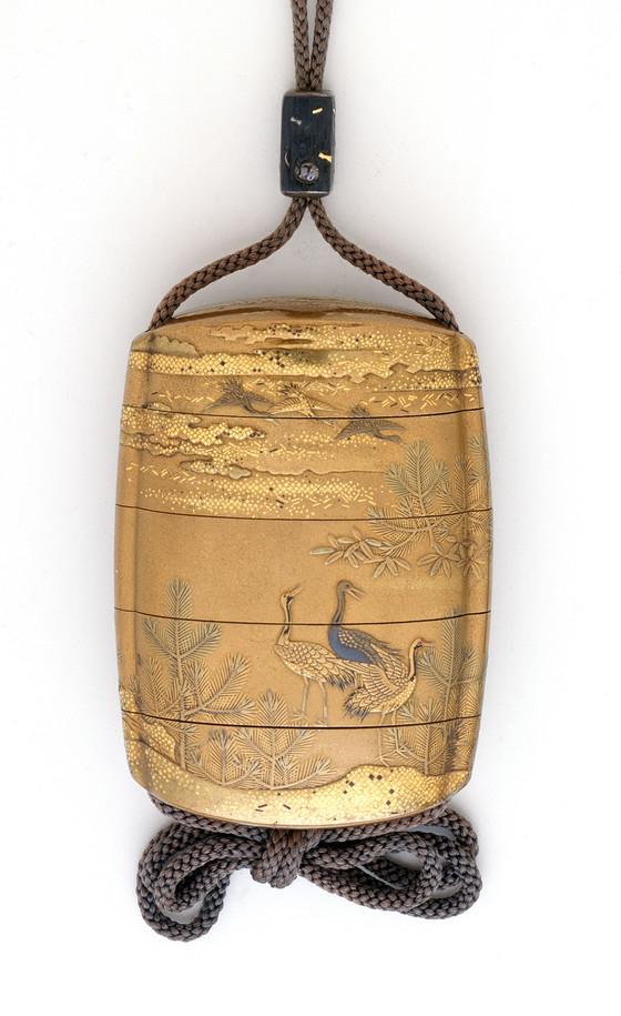 Cranes amid Young Pines (Inrō/Ojime/Netsuke Ensemble)