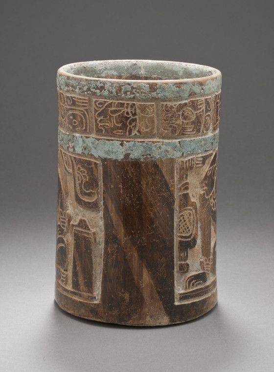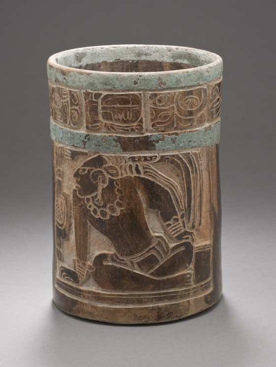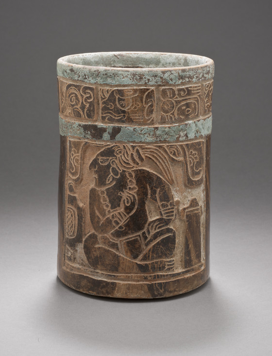 Slip-painted ceramic with postfire application of Maya blue pigment