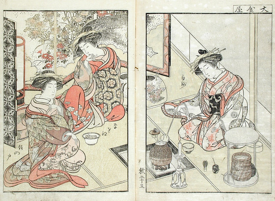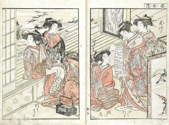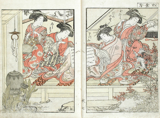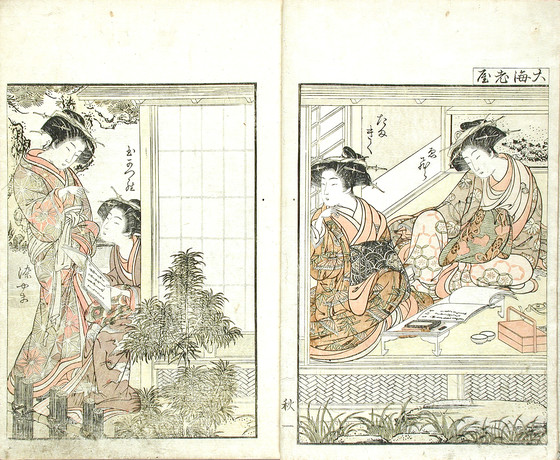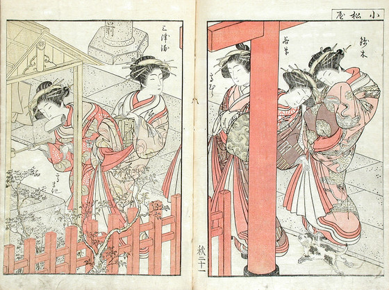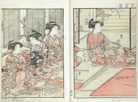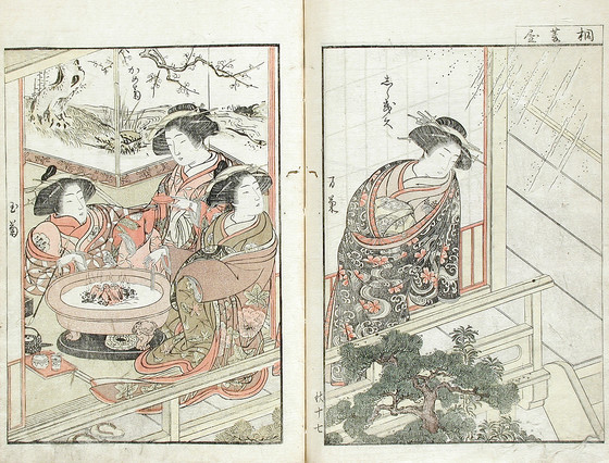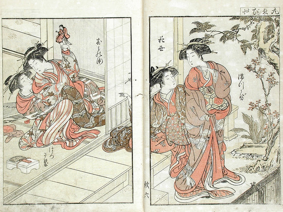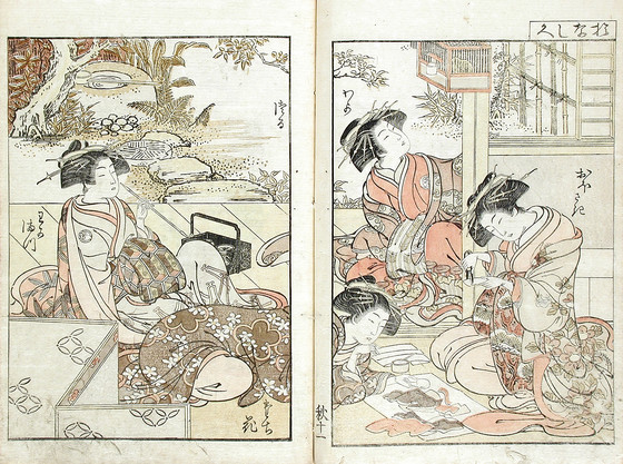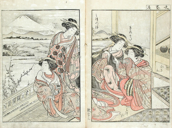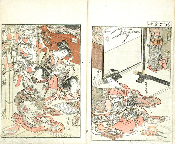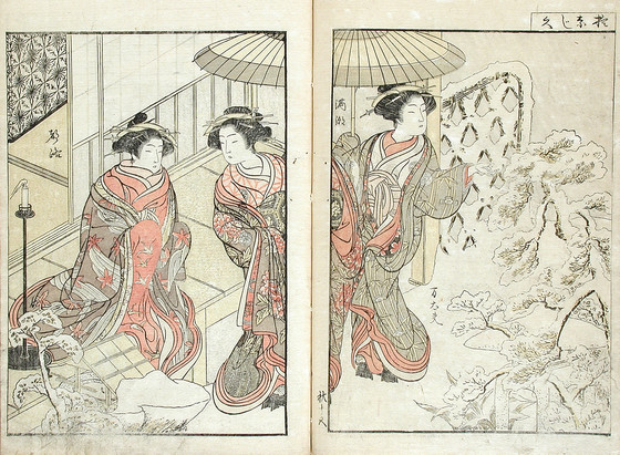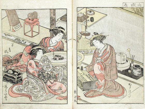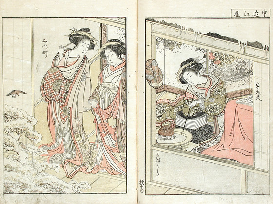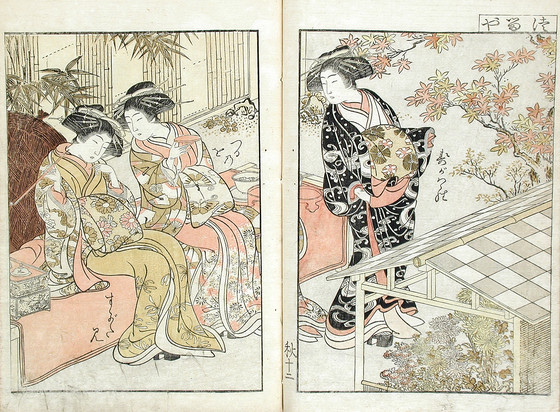 Color woodblock print books; three volumes
