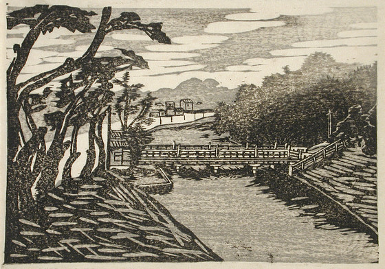 Monochrome woodblock print