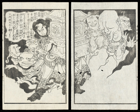 Two pages from an illustrated book; ink on paper