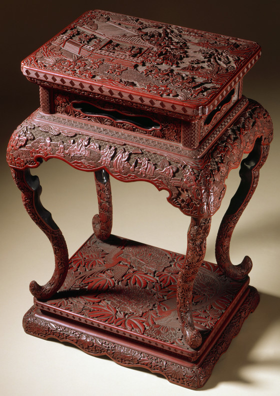 Carved red lacquer on wood core