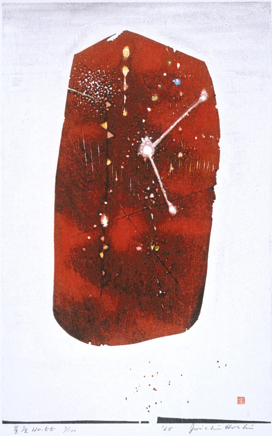 Color woodblock print from burnt plywood, turpentine-diluted ink and color on torinoko paper