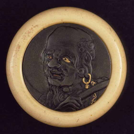 Silver, mixed-metal disk, ivory bowl; kagamibuta type