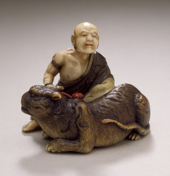 Ivory with staining, sumi, red pigment, inlays