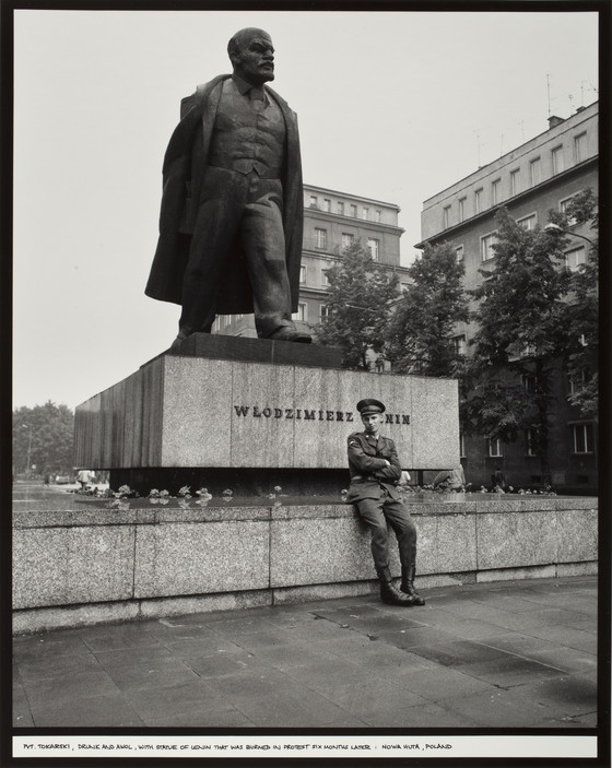 Pvt. Tokarski, Drunk and AWOL, with statue of Lenin that was burned in protest six months later: Nowa Huta, Poland