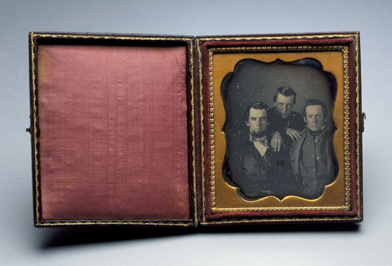 Daguerreotype (1/6 plate) with 4-bracket preserver in leather case