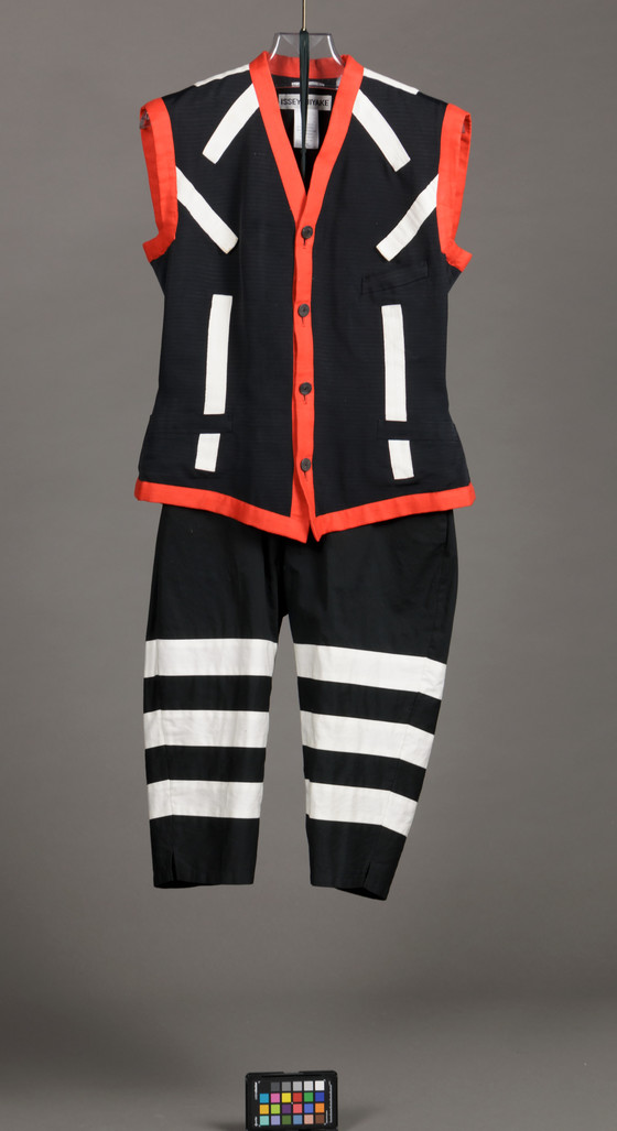 Vest: Silk plain weave (ribbed), rayon plain weave; Pants: Cotton twill