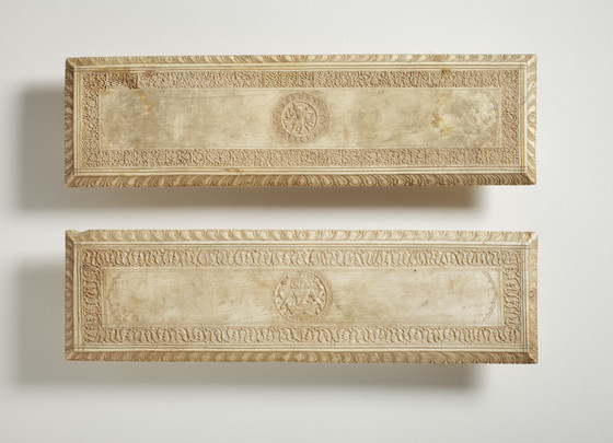 Pair of Manuscript Covers with Varaha and pseudo-inscription (A) and Yoga-Narasimha (B)