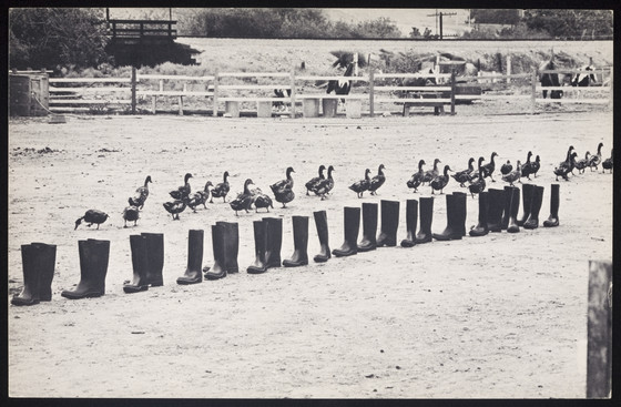 Installation: 96 x 144 x 144 in. (243.84 x 365.76 x 365.76 cm); Postcards: 4 1/2 x 7 in. (11.43 x 17.78 cm) each; Boots: 15 1/2" high X 12 1/2" long toe end to heel end and 3 1/4" wide at the heel. The boots are sizes 9 thru 12 and are unlined.