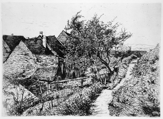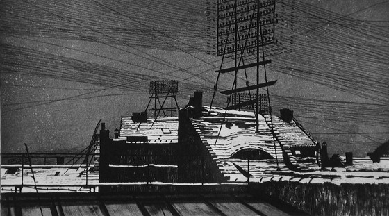 Printed material with three etchings, one etching and aquatint, one lithograph, and one woodcut on wove and laid papers