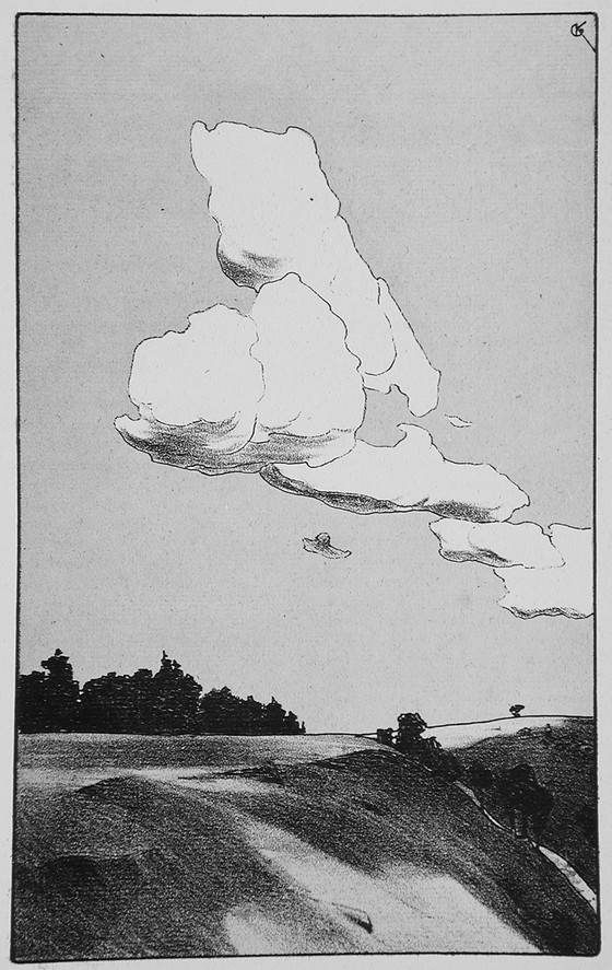 Printed material with two etchings, two lithographs, one woodcut and one mezzotint