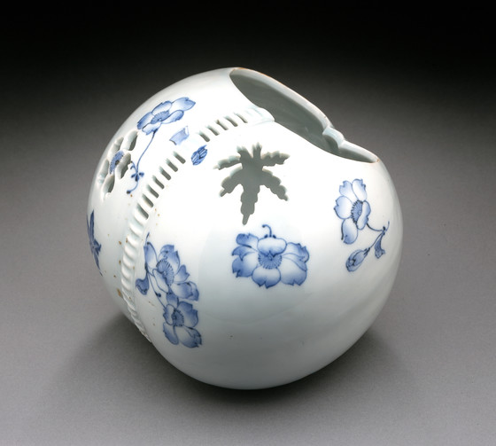 Alternate Title: 平戸三河内焼染付桜文透彫楓葉蹴鞠型手焙