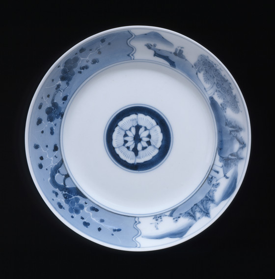 Alternate Title: 平戸三河内焼染付梅山水文皿