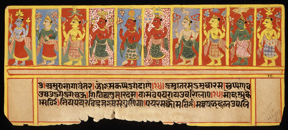 Ten Classes of Jain Cosmological Deities Identified by Their Crown Ornaments, Folio from a Laghu-Samgrahanisutra ('Short' Book of Compilation)