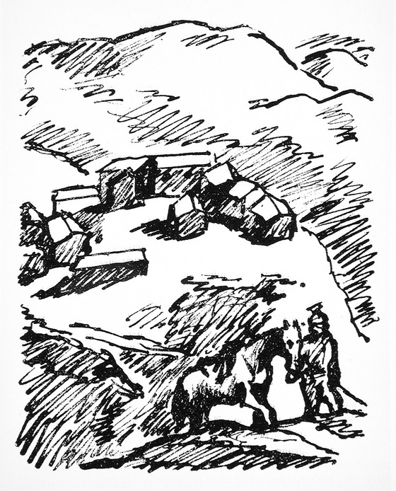 Printed material with two lithographs and one woodcut on wove paper