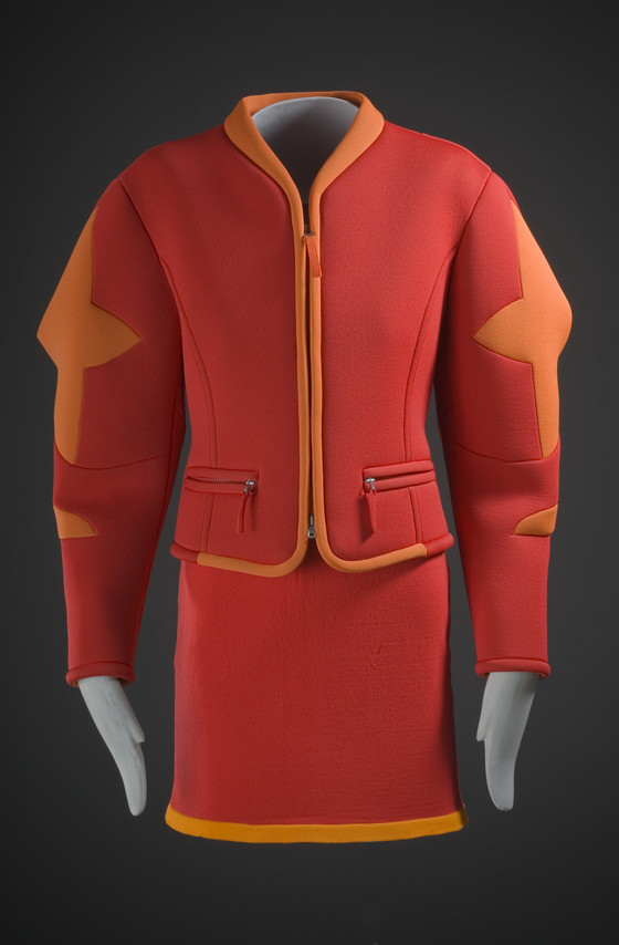 Jacket: nylon knit with polyurethane bonding; Skirt: nylon knit
