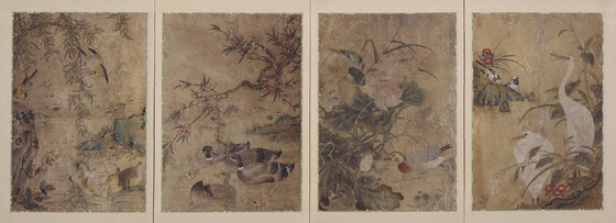 .a) Image: 21 7/8 x 14 5/8 in. (55.56 x 37.15 cm); .b) Image: 21 7/8 x 15 3/8 in. (55.56 x 39.05 cm); .c) Image: 21 7/8 x 15 3/8 in. (55.56 x 39.05 cm); .d) Image: 21 7/8 x 14 5/8 in. (55.56 x 37.15 cm); Overall screen: 26 1/4 x 70 1/4 in. (66.68 x 178.44 cm)