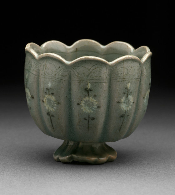 Flower - shaped Cup with Inlaid Chrysanthemum Spray Design