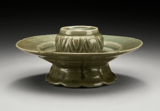 Flower - shaped Cup Stand with Incised Chrysanthemum Spray Design