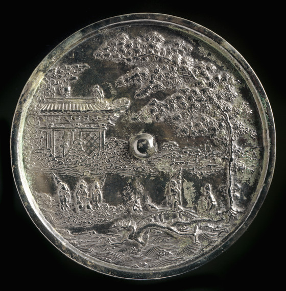 Mirror with Figures and a Pavilion in a Landscape