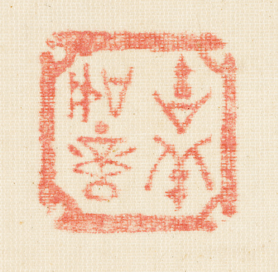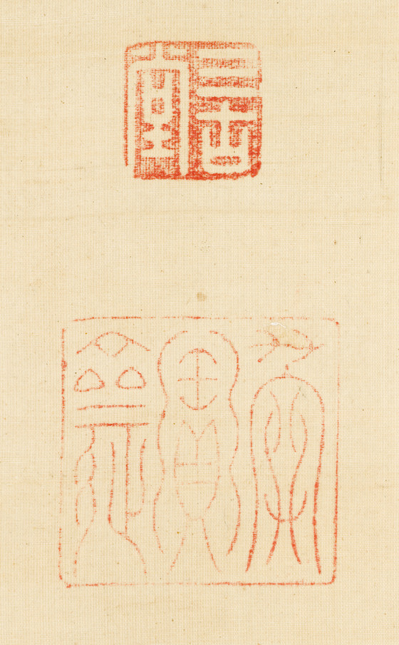 The author of the inscription on the top of the painting is Kim Jeonghui, the famous philosopher, scholar, art theorist, artist, and calligrapher.[3] Kim was the influential leader of a group of scholars and artists during the late Joseon period and he introduced to Korea the scholarship of epigraphy prevalent in China. The last line of the inscription, which reads “the owner of Light Shadow Hut [Deungyeongam],” indicates that the writer is Kim Jeonghui because Light Shadow Hut was the name of his study. In addition, the two seals reading “gilsang yeonyi” and “Samgodang,” identify Kim (det. 3).