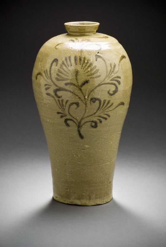 Prunus Vase with Chrysanthemum Spray Scroll Design in Underglaze Iron