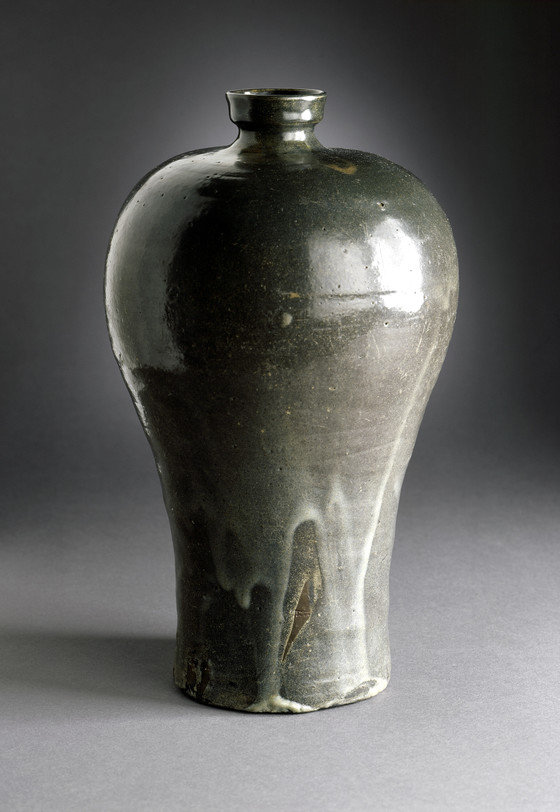 Black-glazed Prunus vase