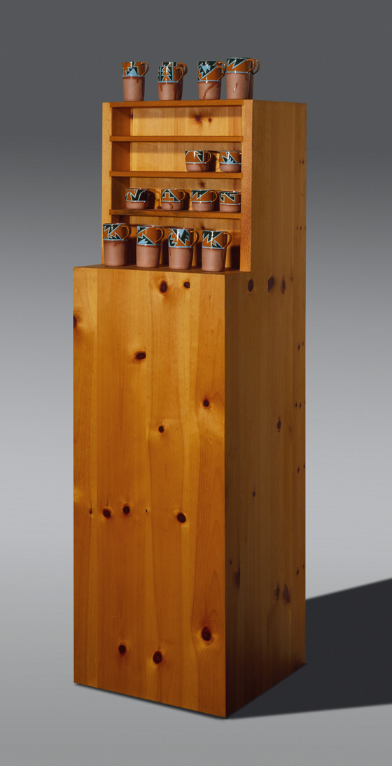 Cabinet: 70 x 21 x 21 1/4 in. (177.8 x 53.34 x 53.98 cm); Cups: Height: 2 1/2 in. (6.35 cm); Diameter: 5 1/4 in. (13.34 cm) each