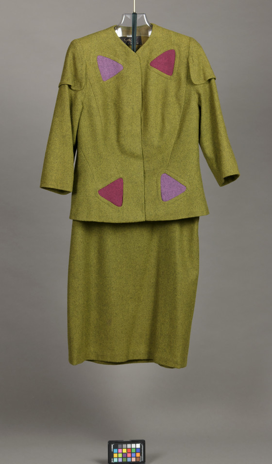 Cape, Jacket and Skirt: Wool twill, fulled, Dickey: silk knit (jersey)