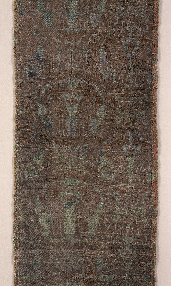 Silk and metal thread; compound twill weave (samit)